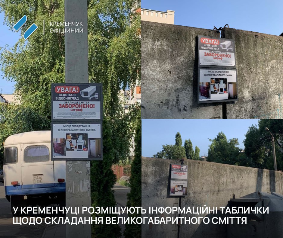 У Кременчуці на сміттєвих майданчиках почали з’являтися інформаційні таблички з правилами складання великогабаритних відходів.