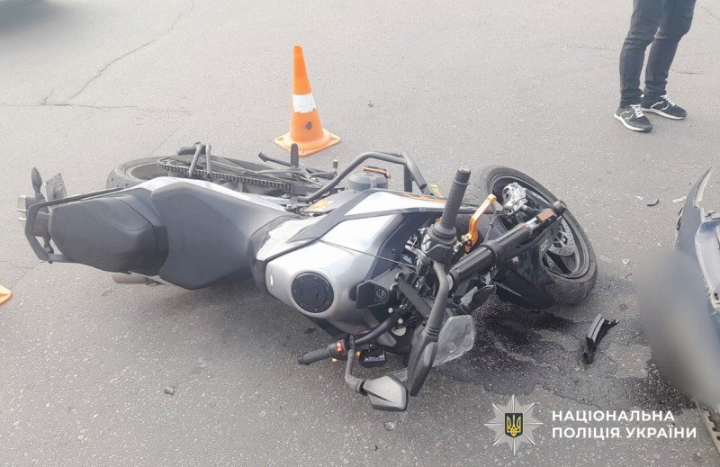 Унаслідок зіткнення мотоцикліст отримав травми та доставлений до лікарні. Поліція розпочала розслідування.