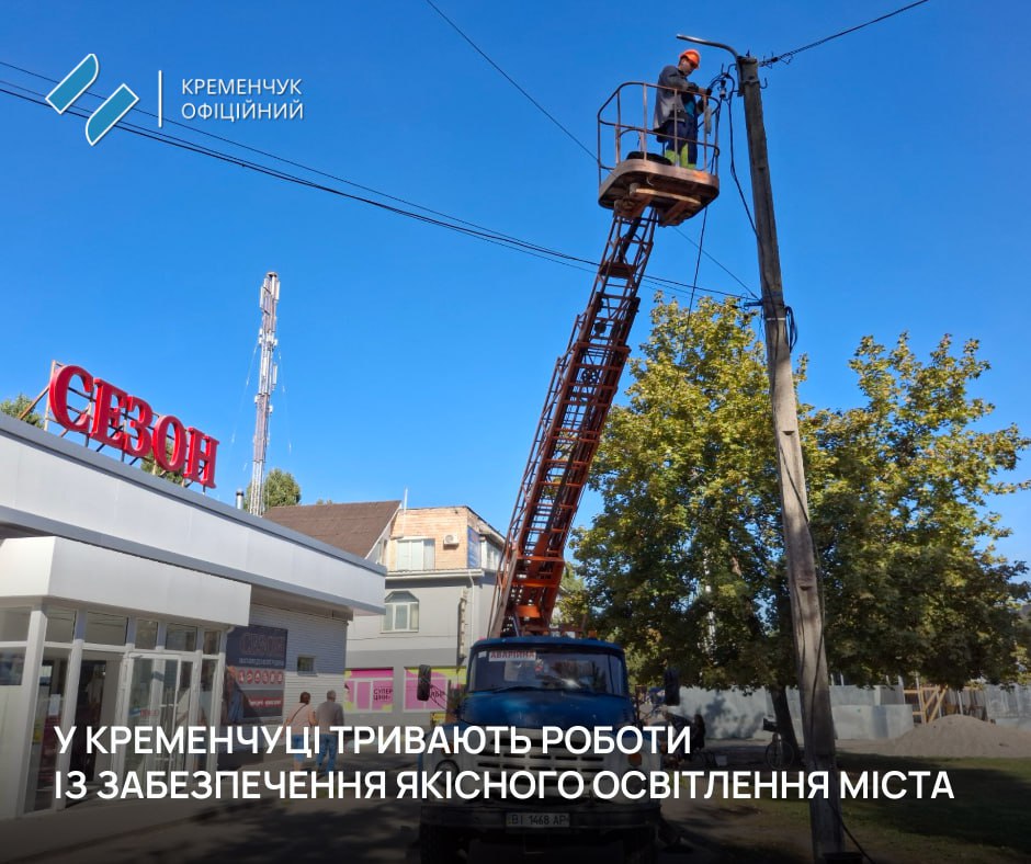 У Кременчуці тривають роботи з підтримки справної роботи мереж вуличного освітлення. Фахівці КП «Міськсвітло» щодня дбають про те, щоб місто залишалося світлим і безпечним у вечірній час.