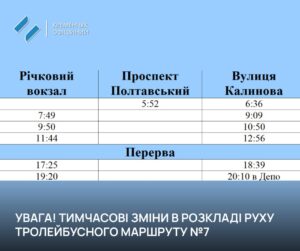 11 листопада тролейбусний маршрут №7 курсуватиме за тимчасовим зміненим графіком.